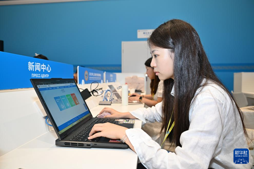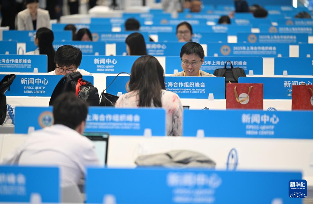 8月28日,2025年上海合作组织峰会新闻中心正式启用。新闻中心位于天津梅江国际会展中心二期,面积约1.28万平方米的场馆内,包含综合服务区、媒体公共工作区、新闻发布区、科技文化互动展示区等区域,向中外媒体记者提供广播电视、新闻发布、官方图片、峰会资讯等服务。